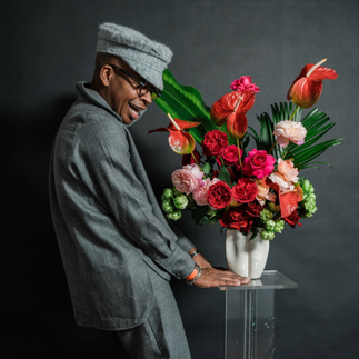 With a sculptural gold vessel and luminous movement, Canaan Marshall approached the unconventional palette with fearless artistry. Peach, coral, blush and soft butter tones danced together in a composition that felt joyful and unapologetically expressive. His design proved that Valentine's Day doesn't need to whisper in crimson to feel romantic; it can glow in warmth, personality and bold intention. The arrangement radiated confidence, reminding us that love can be vibrant and expansive.